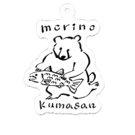 アクリルキーホルダー - 50 x 50 (mm)森のくまさんがシャケを採ってきたようです。 なんだかムチムチしているくまさんだ。 (50mm×50mm)