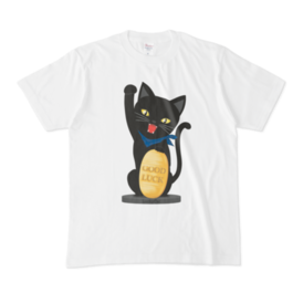 招き猫Tシャツ白ボディ_002ブルー_4size