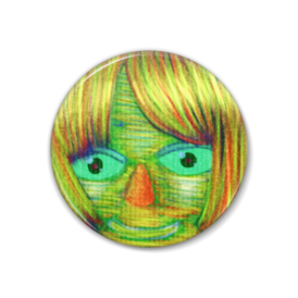 緑の顔の缶バッチ1
