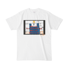 Tシャツ - XLこの商品はpixivFACTORYで作られた商品です。サンプル画像は完成イメージのため、実物と異なる場合があります。 《Tシャツにだけはするな》 赤字ニキの悲痛な叫びは肩幅モンスター仔犬丸ララには届かなかった… 冠婚葬祭に、寝巻に、部屋着に、 これを着て肩幅を広げましょう。 ※肩幅を広げる効能は今のところは医学的に証明されておりません。