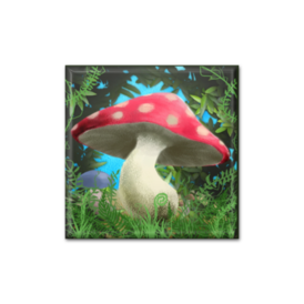 缶バッジ - 四角形40mm森のきのこの缶バッジ(四角)。 身に着ければきっとご利益があるきのこ教グッズです。