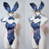 2/21より尻尾をフェイクファー素材に変更しました チャイナブロケードと白色のエナメルで制作したバニーガールです 後ろファスナー着脱、4本ボーン 締め上げてボディラインを作る衣装のため、全体的に締め付けがあります <サイズ> 7号、9号、11号 締め上げて余った肉を胸に誘導する形なので、バストトップのみサイズ大きめです。 パッドを入れても見えにくい作りにしているので、胸が小さめの方はパッド等で調節してください <セット内容> バニーコート、うさ耳カチューシャ、蝶ネクタイ 素人が趣味で制作しているハンドメイド製品です。 柄生地を使用している場合、一つ一つ柄の出方が違います。 ご理解いただける方のみお願いいたします お色違いや、サイズ違い、耳のタイプ違い等も対応できる場合がございますので、お問い合わせください