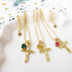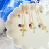 時を刻む調べ、その石の加護と共に。 伝え受け継ぐ想いと願いを、力に変えて。 繊細な模様入りのクロスチャームに、 小さなクリスタライズのビジューを添えて。 パープルベルベット、ルビー、ブルージルコン。 クロスモチーフに相性の良い3色をご用意しました。 MSD~SD17まで対応。 少し長めになりますが幼SDでも大丈夫です。 アジャスターにてサイズ調整可能です。 トップ部分 クロスチャーム:縦12mm クリスタライズ(クリスタルガラス)1100/1012/1028:PP31(約4mm) チェーン部分(1.0mmカットボールチェーン) 約10cm+アジャスター アジャスターの先にはクリスタライズ5328の3mmを使用。 金具:ゴールドカラー(メッキ) ※チャーム/クリスタライズのセッティング:真鍮無メッキ ※クリスタライズのセッティングにはボンドを使用しています。 ネックレス部分のサイズ調整可能です。 他カラーのクリスタライズにて受注製作も承ります。 ご希望の方は備考欄にその旨ご記入頂くか、メールにてお問い合わせ下さい。 「在庫切れ」・「お問い合わせ下さい」と表示されている商品については、 材料の在庫次第で作製可能のものもございます。 お気軽にお問い合わせ下さい。 ※受注製作となります。 ※スワロフスキークリスタライズ→チェコプレシオサへ変更する場合もあります。