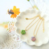 ふわり、爽やかな春風にのせて。 香る花の優しい香りと、揺れるスカート。 シルキーなカラーが綺麗なお花のチェコガラス。 ゴールドのライン模様が、少しエキゾチック。 可愛らしいビーズをシンプルに一粒ネックレスに。 春色フラワー、コーデも楽しくなるでしょ? MSD~SD17まで対応。 少し長めになりますが幼SDでも大丈夫です。 アジャスターにてサイズ調整可能です。 トップ部分 お花ビーズ(チェコガラス):10mm チェーン部分(1.0mmカットボールチェーン) 約10cm+アジャスター アジャスターの先には小さな葉っぱチャームを使用。 金具:ゴールドカラー(メッキ) ※ビーズの色の出方は個々で違います。 ネックレス部分のサイズ調整可能です。 他カラーのクリスタライズにて受注製作も承ります。 ご希望の方は備考欄にその旨ご記入頂くか、メールにてお問い合わせ下さい。 「在庫切れ」・「お問い合わせ下さい」と表示されている商品については、 材料の在庫次第で作製可能のものもございます。 お気軽にお問い合わせ下さい。 ※カラーにより受注製作となります。