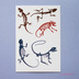 トカゲの骨格の転写タトゥーシールです。 画面上、白地に見える部分は実際には透明になります。 貼り付けたときには、写真とは左右反転します。 トカゲの骨格のシルエット5種をタトゥーシールにしました。 トカゲ、グリーンイグアナ、カメレオン、フトアゴヒゲトカゲ、エリマキトカゲの5種です。カメレオン以外の4種は既存の「トカゲの骨格1」「トカゲの骨格2」と重複していますがサイズを縮小しています。 絵柄のサイズ 左上 幅35×高さ58mm。 水で湿らせて貼り付けるだけなので簡単。はがすこともすぐできます。 タトゥーシールとして肌につける以外にも、プラスチックや金属など表面がなめらかなものに貼り付けられます。 【素材】 市販の転写シール 透明タイプ 【サイズ】 幅100×高さ148mm 【購入の際の注意点】 表面の粗いものにはきれいに転写できません。 水を使って転写させるため、紙など水に弱いものには転写できません。 肌に転写した場合は一日を目安にはがしてください。 シートは湿気を吸いやすい性質があるので、なるべく早めにお使いください。