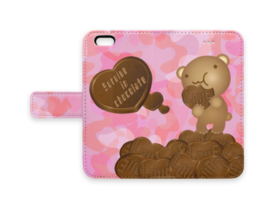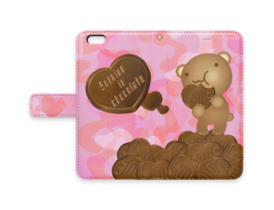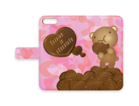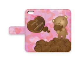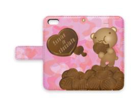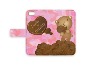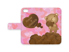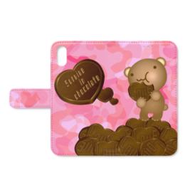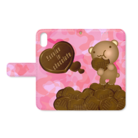 クマチョコ 桃 手帳型iPhoneケース