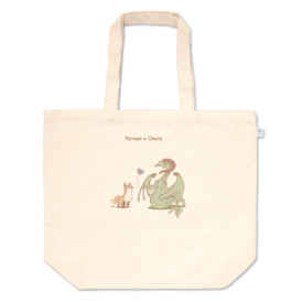 トートバッグ - L - プリント面積中コタローとオリガさんのトートです。 ちょっとしたマイバッグくらいの大きさで、四角いインスタント焼きそばが平置きで6~8個くらい入ります。 この商品はpixivFACTORYで作られた商品です。サンプル画像は完成イメージのため、実物と異なる場合があります。