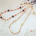 ショコラクランベリーとピーチシャンパーニュ。 甘い季節のロングネックレス。 シックな大人色に、甘い色を敢えて合わせて。 間にメタルチェーンを挟んで、ちょっと引き締める。 首周りはすっきりと、カットアズキチェーンでシャープな印象も。 シンプルに、華奢に、大人の秋冬カラー。 繊細に、女性らしく。 MSD~SD17まで対応。 少し長めになりますが幼SDでも大丈夫です。 アジャスターにてサイズ調整可能です。 長さ:20cm+アジャスター3cm FP(ベネチアンガラス):5mm/3mm(後染め) メタルチェーン:縦6mm 1.2mm幅カットアズキチェーン 金具:ゴールドカラー(メッキ) ※ビーズの色の出方は個々で違います。 ※ネックレス部分のサイズ調整可能です。 「在庫切れ」・「お問い合わせ下さい」と表示されている商品については、 材料の在庫次第で作製可能のものもございます。 お気軽にお問い合わせ下さい。 ※両カラー共に受注製作となります。