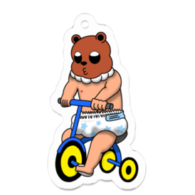 アクリルキーホルダー - 50 x 50 (mm)『膣から産まれた膣太郎』のキーホルダーシリーズ第1弾だよ。 三輪車に乗って風になる膣太郎が50mmサイズで登場! 自転車に乗れないんだよね……膣太郎ってやつは。 幼稚園のころ、おじいちゃんが三輪車を買ってくれたわけ。 ピカピカ青くて、サドルにクマさんの絵が描いてあるの。 「はいよシルバー!どうどうべ」町内を走り回ったもんよ。 今もたまに乗るんだけど、まぁ職質されるよね。 大人が三輪車で風になっちゃダメなんだって。へぇ。 ※この商品はpixivFACTORYっていうサイト?で作ったよ。 SANPL画像はイメージだから実物と異なる場合があるらしいべ。