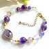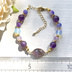 パープルとホワイトカラーでまとめた白鳥沢カラーのブレスレットです。 天然石とガラスビーズをメインに使いやすいデザインに仕上げました。 大人らしく、上品さも忘れない使いやすいアイテム。 天然石を使用していますので濡れても安心♪ 天然石の個性的な風合いとキラキラと輝くガラスビーズをお楽しみください。 【使用材料】 アメジスト キャンディジェイド 合成オパール メタルビーズ ガラスビーズ 【サイズ】約16.5〜21.5cm 金属についた水や汗を拭き取って頂くことで劣化を遅らせることが出来ます。 ハンドメイド品ですのでご理解頂いた上でご購入ください。 配送は、普通郵便となります。配送事故への補償はございません。 ご心配な方は+100円でクリックポストへの変更が可能ですのでご購入前にお知らせくださいませ。 【pulia 】