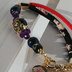 ご覧下さって有り難うございます 和柄ブレスレットの新作です 刀剣の薬研藤四朗をイメージしました 。 短刀なのであまりごつくなく、瞳の色・アメジスト小粒で表しました。 黒い縮れ紐と赤い江戸打ち紐で鎧と相引の紐に見た立てます。 普通に丸玉を繋げるのではなく、小粒を入れることで素直じゃない彼を表現してみました。 伊達家の家紋付きのオニキス10mmにダイヤカットのアメジスト3mmでアクセントをつけ、色の濃いソーダライトを組み合わせました。 アメジストは「真実の愛を見つける」と云われてますが、自己の精神を安定させ、それから周囲をみわたせる余裕が生まれ他者との調和が取れやすくなるからです。つい感情的になってしまいがちな時にもつと助けてくれると思います。 ソーダライトも古代エジプトでは「僧侶の石」とされ知性と感情のバランスを整えるといわれてるのでアメジストと組み合わせて心を落ちつけるには良いかもしれません。 また深い青い色が学生さんには勉学に集中しやすくなると云われてるので、学業UPにいいですよ。 そしてオニキスは障害を取り除くのに強い力を発揮するので、この組み合わせでは目標にむかって前進する人をお助け出来るように作りました。 留め具は片手でも装着しやすいようにあえて横に付けています。 全長は18cm。手首径14cm~の方にお付けいただけます。 アジャスターで長くは出来るのでお気軽にお申し付け下さい。 ◇◇◇◇◇◇◇◇◇◇◇◇ オニキス丸玉 10mm アメジストカット 約4mm×6 ソーダライト丸玉 8mm×2 金具 メッキ仕様 ◇◇◇◇◇◇◇◇◇◇◇◇ ハンドメイド作品のため、作成時の跡が金具に多少ついてます。 丁寧につくってはいますが商業品のようなクオリティはありませんので、ご了承ください。 金具はメッキをしてあるものなので金属アレルギーがあるかたにはお薦めできません。 配送が定型外郵便ですので、配送時の補償がございません。不測の事態が起こった時に対応できないことがあるかもしれません。ご心配な方は別の配送方法をご呈示下さい。できるだけご希望に添うように致します。