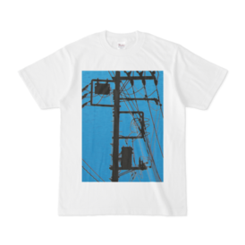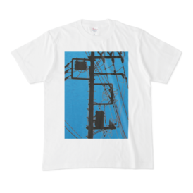 シンプルデザインTシャツ 電柱青