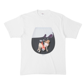 Tシャツ - XL - 正面可愛い女の子がワインに沈む不思議なTシャツ!