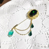 Growthをイメージしたピンブローチです。 洋服や帽子、ストールなどに付けてもお楽しみいただけます。 ※ビジューの端部に小さな欠けがございます。 画像をご確認の上、ご了承いただける方のみご購入下さい。 サイズ : 長さ約7.5センチ×幅約2.5センチ(いずれも本体のみ) 素材 : ガラスビジュー・スワロフスキー・合金(ピン部分及びフレーム) ・先の尖った部分がありますので、お取り扱いにはご注意ください ・水に濡れるとサビ、劣化の原因となります ・パーツ及びガラスビジューの表面に小さな疵が付いている場合がありますが材料の仕様によるものですのであらかじめご了承ください(目立つ疵などがある場合は明記致します)