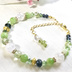 天然石とガラスビーズをメインに使いやすいデザインに仕上げました。 大人らしく、上品さも忘れない使いやすいアイテム。 天然石を使用していますので濡れても安心♪ 天然石の個性的な風合いとキラキラと輝くガラスビーズをお楽しみください。 【使用材料】 グリーンオーラクォーツ キャンディークォーツ クラッククォーツ ペリドット 水晶 スワロフスキー ガラスビーズ メタルビーズ 【サイズ】約16〜21cm 金属についた水や汗を拭き取って頂くことで劣化を遅らせることが出来ます。 ハンドメイド品ですのでご理解頂いた上でご購入ください。 配送は、普通郵便となります。配送事故への補償はございません。 ご心配な方は+100円でクリックポストへの変更が可能ですのでご購入前にお知らせくださいませ。 【pulia 】