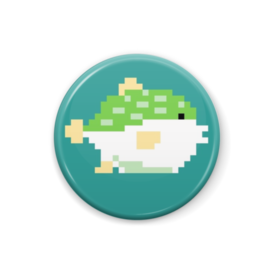 缶バッジ - 44mmドット絵で作ったフグの缶バッチです。 他の魚と組み合わせて、オリジナル魚群を作るのもおすすめです! この商品はpixivFACTORYで作られた商品です。サンプル画像は完成イメージのため、実物と異なる場合があります。
