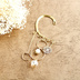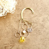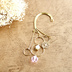 〜サッと片耳にかけるだけでお洒落♪〜 ゴールドの環がいくつも連なり、幾何学模様のような個性的でおしゃれないイヤー フックです。大粒のコットンパールに、10mm玉のスワロフスキー・クリスタルが輝きます。 ★イヤリングが苦手な方こそ身に着けてほしい★ 普段イヤリングやピアスをしない方にも手軽にサッとおしゃれができるイヤーフックです。 ピアスをされる方は重ね着けもでき、デイリーはもちろん、華やかさを要するパーティシーンにも活躍します♪ サイズフリーなのでプレゼントにも最適です。 イヤーカフとの併用もおすすめです♪ ★Radiantのイヤーフックのポイント★ ・耳の形に合わせて自由に調整可能なので落ちにくい ・1日中着けていても痛くならない ・見かけによらず着けているのを忘れてしまうほど軽い ・ピアスやイヤリングが苦手な方も気軽に着けられる ・眼鏡をかけながらも装着可能 ◆サイズ・・・【イヤーフック】フリー、全長約12cm ◆素材・・・スワロフスキー・クリスタル(光線透過率:93%)、コットンパール ※無料簡易ラッピング(袋ラッピング)も承ります。購入時にお知らせください。 ※イヤーフック部分はメッキですので金属アレルギーの方は購入をお控えください。 ※右耳用で制作しています。左耳でのご希望の方は無料でお直ししますので、備考欄に「左耳用希望」とお知らせください。