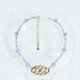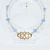 クリアブルーとクリスタルのガラスビーズを繋ぎ合わせて、可愛い仕上がりとなっています。