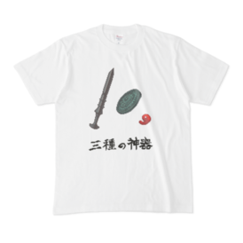 三種の神器のドット絵がプリントされたTシャツです。 この商品はpixivFACTORYで作られた商品です。サンプル画像は完成イメージのため、実物と異なる場合があります。