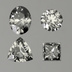 モデルデータ obj形式とfbx形式のメッシュデータ。 右上から時計回りに ラウンドブリリアント 面412 プリンセス 面64 トリリアント 面402 オーバル 面412