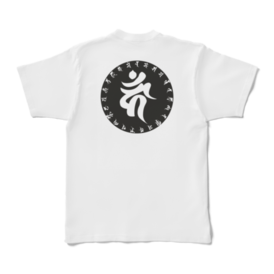 Tシャツ - XL - 背面不動明王の梵字 カーン と 不動明王真言 ノウマク サマンダ センダ マカロシャダ ソワタヤ ウン タラタ カンマン この商品はpixivFACTORYで作られた商品です。サンプル画像は完成イメージのため、実物と異なる場合があります。