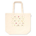 トートバッグ - L - プリント面積中餅とうさぎを掛け合わせたイラストです。 ・カラー ドット柄背景 イラストは餡子、磯辺、桜餅、柏餅、豆大福、そしてきな粉餅です。 この商品はpixivFACTORYで作られた商品です。サンプル画像は完成イメージのため、実物と異なる場合があります。