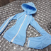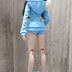 モデル:Smartdoll(XL胸)、 DD(M胸) セット内容 ・フード付パーカー ・ショートパンツ (ドール本体、アクセサリー、靴及び撮影用小物は付属しません) Smartdollサイズのレディース用セットアップジャージです。 女の子用なので、装飾をレース風ブレードに変えてみました。 爽やかなブルーでクールビューティー感が上がったような気がしますね。 (※画像のピンクバージョンは別ページでご紹介しております) リラックス用普段着や部活風、トレーニング用など幅広いシーンでお使いいただけます。 ウエストからヒップのシルエットを綺麗に出したかったので、上着、パンツ共にポケットは付けておりません。 色移りの心配は低いかと思いますが、着せっぱなしにする際は念の為時々ご確認いただくことをお薦めいたします。 Smartdollのレディースサイズが基準ですが、メンズも着用できます。(女子はXL胸まで確認済み。) その他DDベースボディⅢM胸は着用確認済みです。