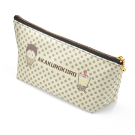 ポーチ - 長さ21.5cm / 高さ10cm - ブラックタピオカミルクティーモチーフの手軽なポーチ。