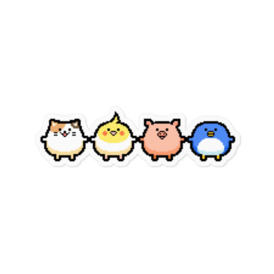 ステッカー - 100 x 100 (mm)どうぶつピッタンコ】に登場するどうぶつが、なかよく手を繋いでいるステッカーです。 下記のサイトからどうぶつたちのミニゲームが遊べます。 気になった方はぜひ、遊んでみてください! (PCでのみ遊べます。) https://unityroom.com/games/animal_circle この商品はpixivFACTORYで作られた商品です。サンプル画像は完成イメージのため、実物と異なる場合があります。
