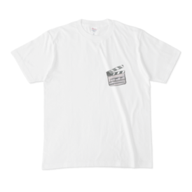 Tシャツ - XL - 白この商品はpixivFACTORYで作られた商品です。サンプル画像は完成イメージのため、実物と異なる場合があります。 前面のカチンコを胸元サイズにし、スタイリッシュにしたバージョンです。 背面のサイズは大きいままです。 映画好きのための1枚。