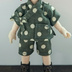 オビツ11、ねんどろいどどーる共通サイズの甚平とハーフパンツのセットです。 画像では紺/赤の市松がねんどろいどボディ、カーキドットがオビツ11ボディを着用しています。 すべて同じ型紙で作成しています。 甚平は片側にスプリングホックでとめるタイプです。 ポケットは一応BB弾1~2個程度入ります。 画像をご参照ください。 ハーフパンツのウエストゴムは取り外しできません。