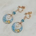 ご覧いただき、ありがとうございます。 DQ10のウェディをイメージしたサークルピアス/イヤリングです。 大小のフープとレジンで三日月型のサークルを作り、中にクラッシュシェルとマリンモチーフのメタルチップを封入しています。 背景はうっすらと海の水面の模様が見えるようにしています。 サークルの中心にはスワロパールを下げました。 ■サイズ 全長約5cm モチーフ約2cm ■素材 フープ大小 レジン クラッシュシェル メタルチップ スワロフスキーパール5mm ボタンカットガラス ※お使いの端末や閲覧環境により、写真と実物の色味や質感が多少異なって見えることがございます。 ■購入の際の注意点 ☆金属アレルギーの方はお控えください。 ☆ハンドメイドのため、デリケートに出来ており、市販品・既製品ほどの強度はないため、使用を重ねることにより破損する場合がございます。 ☆レジン液は年数が経ちますとどうしても黄色味を帯びてきます。直射日光など当たらない所での保管をお勧めします。 一つ一つ手作りなので多少形が違ったり気泡などが入る場合があります。 ☆防水加工ではないので、水に触れないようご注意ください。 ■発送について あんしんBOOTHパック ネコポスで発送予定。 基本1~7日で発送させて頂きます。