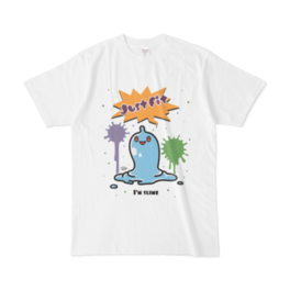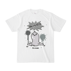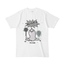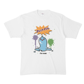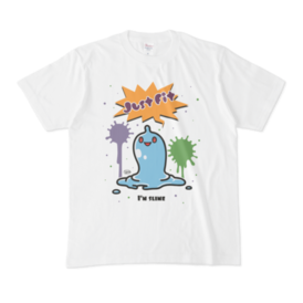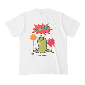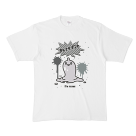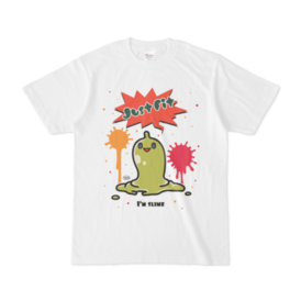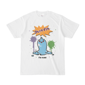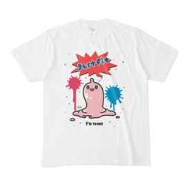 白 XL(モノクロ)オリジナルスライムキャラ 『JustFitくん』のTシャツ。 デザインの色を ・ピンク ・ライトブルー ・ライトグリーン ・モノクロ からお選びいただけます。 ※pixivFACTORYで作りました。 ※サンプル画像は完成イメージのため、実物と異なる場合があります。