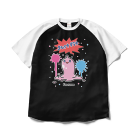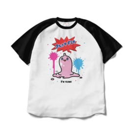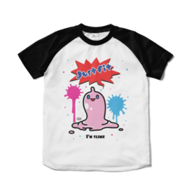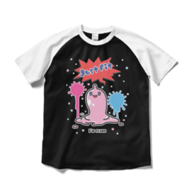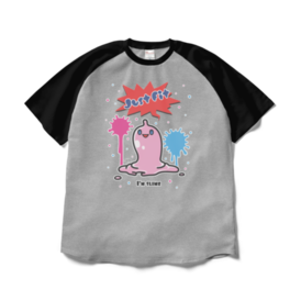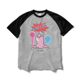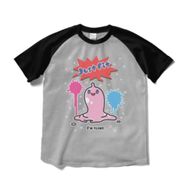 ラグラン(杢グレー×黒) XLオリジナルスライムキャラ 『JustFitくん』のTシャツ。 こちらのページでは、 ピンクデザインのみ取り扱ってます。 ※pixivFACTORYで作りました。 ※サンプル画像は完成イメージのため、実物と異なる場合があります。