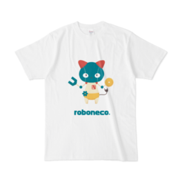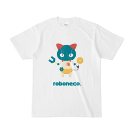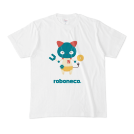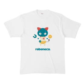 Tシャツ - XL - 白充電式ロボねこちゃんのTシャツ。 2時間の充電で12時間持つスグレモノ。 いじめすぎるとコードを噛みちぎって自殺するので要注意。