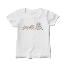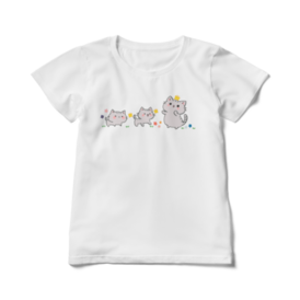「レディース」にゃんこ三姉妹ちょうちょTシャツ