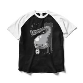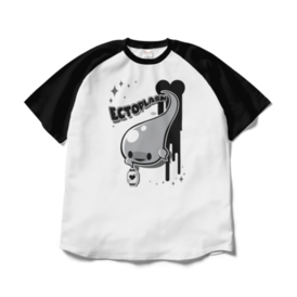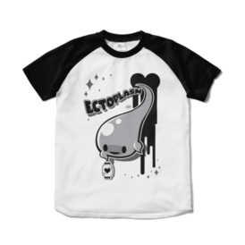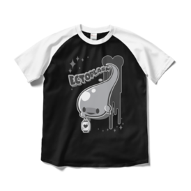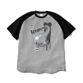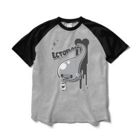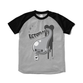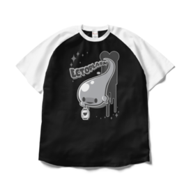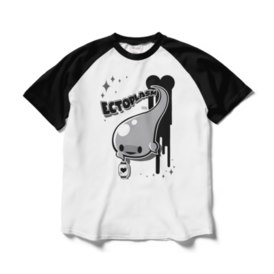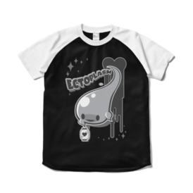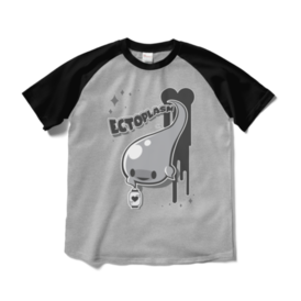 杢グレー×黒 XLオリジナルオバケキャラ 『Ectoくん』のラグランTシャツ。 モノクロデザインバージョン。 ※pixivFACTORYで作りました。 ※サンプル画像は完成イメージのため、実物と異なる場合があります。