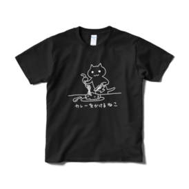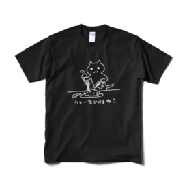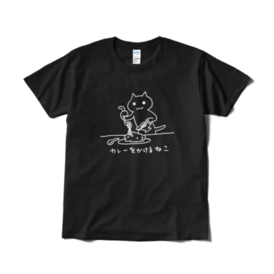 XL - ブラックオリジナルのねこちゃん「にゃーん」のTシャツ(ホワイト/ブラック)です。カレーです。にゃーん。 ※ホワイトとブラックでは、お値段設定が異なります。ご注意ください。 ※短納期の商品となります。 この商品はpixivFACTORYで作られた商品です。サンプル画像は完成イメージのため、実物と異なる場合があります。