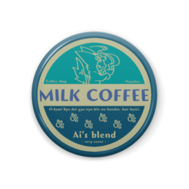 缶バッジ - 44mmおーかみきょーだい缶バッジ、略して『おーかみバッジ』。 こちらはきょーだいの兄、藍のMILK COFFEEデザインになります。 別売りの緋の缶バッジとともにいかがですか?