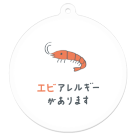アクリルキーホルダー - 50 x 50 (mm)エビアレルギーの方のためのアクリルキーホルダー。 小さな子がエビアレルギーがあることを周りに知ってもらうためにもご利用いただけます。 この商品はpixivFACTORYで作られた商品です。サンプル画像は完成イメージのため、実物と異なる場合があります。