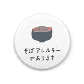 缶バッジ - 44mmそばアレルギーの方のための缶バッジ。 小さな子がそばアレルギーがあることを周りに知ってもらうためにもご利用いただけます。 この商品はpixivFACTORYで作られた商品です。サンプル画像は完成イメージのため、実物と異なる場合があります。