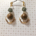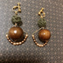 ハンドメイドイヤリング 秋 カーキボール ウッドビーズ