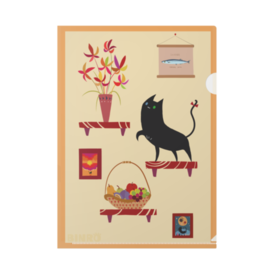 クリアファイル - A4ビンロウの絵に写真、秋の果物、雑貨屋で見かけた造花、それと瀬奈の友達から贈られた謎のSANMAタペストリー。 〇他のビンロウグッズ https://booth.pm/ja/search/kuronekobinro 〇SUZURI版(外部リンク) https://suzuri.jp/harunokikobo ※「黒猫のビンロウ」および「海辺の詩人春近瀬奈」は真絢さんの作品であり、使用許可を頂いてグッズを作成しております。 この商品はpixivFACTORYで作られた商品です。サンプル画像は完成イメージのため、実物と異なる場合があります。