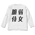 ロングスリーブTシャツ - XL - ホワイト福寿今日亜の創作キャラクター(達):ヤミマクリチャン全員が初期装備として必ず所持しているTシャツを再現しました。 3~5枚目の絵の通り前面に「ヤミ」、背中に「脆弱侍女」というプリントがあります。色はホワイトのみです。 これで2つ結び(とお花型アホ毛)をすれば誰でもヤミマクリチャンになれるかもしれない。 ※受注生産品です。発送はpixivFACTORYからとなります。 ※この商品はpixivFACTORYで作られた商品です。サンプル画像は完成イメージのため、実物と異なる場合があります。