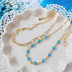 夏の青空に舞う、サボン。 柔らかになないろに反射して、儚く弾ける。 小粒サイズのフランスヴィンテージガラス、ラスター加工のアクアと甘いオーロラ色。 色違いも、他4色。 50~60年代に、オートクチュール用に作られたもの。 シンプルに、そして贅沢に繋いで。 細めのアズキチェーンと合わせて。 アンティーク感たっぷりの、ちょっと歪なビーズが可愛い。 華奢なサイズが、ちょっと上品で大人な雰囲気。 プチネックレスと重ね付けも可愛いですね。 幼SD~SD17位迄 約20cm+アジャスター コイン型ビーズ(フランスヴィンテージガラス):約3mm/4mm 1.2mm幅細アズキチェーン アジャスターの先には小さな星チャームを使用。 金具:ゴールドカラー(メッキ) ※ビーズの色の出方は個々で違います。 ※ヴィンテージガラスは多少の欠けや歪な形のものも含みます。 古い時代特有の仕様ですので、味としてお楽しみ下さい。 (なるべく状態のいいものを選別して使用しています。) 「在庫切れ」・「お問い合わせ下さい」と表示されている商品については、 材料の在庫次第で作製可能のものもございます。 お気軽にお問い合わせ下さい。 ※受注製作となります。