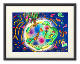 複製画(プリモアート) - A3アナログ色鉛筆作品です。 宇宙。地球。光。樹。龍の子。 自由なストーリーで眺めてみてね☆ ※この商品はpixivFACTORYで作られた商品です。サンプル画像は完成イメージのため、実物と異なる場合があります。