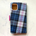 猫とタータンチェックの手帳型スマホケース(ネイビー×マゼンタ) 全機種対応 手帳型 スマホケース iphone16e iphone15 猫 黒猫