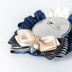 【カラー変更可能】オーダーのご案内ページをご確認ください。 https://morirosette.booth.pm/items/1405962 White×Blackのストライプが印象的な、フリルタイプのロゼットです。 立体的なフリルをお楽しみいただけるよう、贅沢にリボンを使ってお作りしました。 またストライプのリボンの内側も、ベースカラーと同じ色味で揃えています。ちらりと見える部分にも、こだわりのカラーを添えて特別な装いを叶えます。 アクセサリー部分には、ゴールドのハートチャームとクリア感あふれるビーズをいくつも組み合わせています。 また、1粒だけメインカラーと同じビーズも添えています。 いくつものビーズが、揺れるたびにきらめく輝きを演出します。 大好きなひとと過ごす時間の、 おしゃれのプラスとして どうぞお楽しみください♡ < 仕 様 > ▶︎表側 缶バッジをつける部分には、フェルトの内側に磁石がついています。 ご自宅で楽しむ際には磁力によって気軽にいろいろな缶バッジをお楽しみいただけます。(外出時は落下防止の為、必ず缶バッジのピンで直接ロゼットを固定してください) ▶︎裏側 ブローチピンが1箇所あります。 また、上部に1箇所ループがついています。 ▶︎ 対応缶バッジ:75mm 写真では75mmをあわせています。 (缶バッジは付属しておりません) < 配送について > クリックポストでお送りいたします。 ポスト投函でのお届けです。 追跡はできますが、補償はございません。 詳しくは下記ページをご確認ください。 https://morirosette.booth.pm/items/1566171 < お取り扱いについて > 無理な力を加えると破損する恐れがありますので、どうぞ優しくお取り扱いください。 また鞄の材質により、ブローチピンが刺さりづらい場合がございます。 その場合は、ループにお手持ちのボールチェーン等を通してご利用ください。 < 注意事項 > ▷同タイプのデザインでも、使用している材料で価格が異なります。 ▷パーツ等に細かなスレなどが多少ありますのでご了承ください。 ▷白背景の写真が一番実物に近い色に調整してありますが、ご覧いただく環境により色味が多少異なって見える場合がございます。 ▷お支払い後の変更・キャンセルはできかねます。 < 再販について > ▷ご依頼はメッセージよりお願いいたします。 ▷こちらのデザインは、サイズの変更を承ることはできません。 ▷お支払い後の制作となりますので、お届けまでお時間を頂戴いたします。納期については都度ご案内をさせていただきます。 ▷ひとつひとつ手作りで制作しておりますので、写真と多少の誤差がございます。あらかじめご了承ください。 < 使用カラー > ▷サテンリボン 10バニラ/12シャンパン / 66ミッドナイト