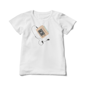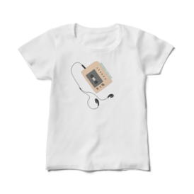 レディースTシャツ - L - 白カセットプレーヤー(歩く男3)