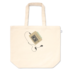 トートバッグ - L - プリント面積中カセットプレーヤー(歩く男3)